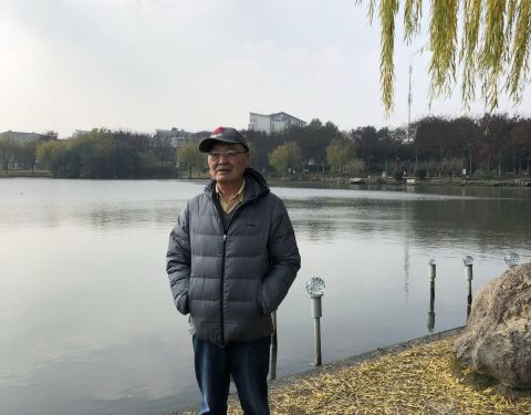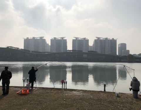 水面很大。有许多人还在湖边捕鱼。 看了介绍,原来这湖还是人工湖