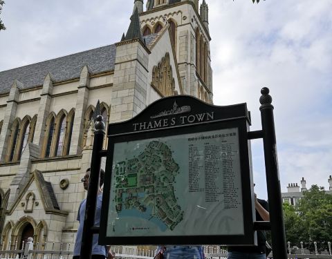第一次来到泰晤士小镇 一头雾水整一个迷路的羔羊哈哈哈 然后 问了问保安怎么走 但是整个小镇看不到几个保安 游客又是四散走的 比较标志性的建筑就是教堂了 这个教堂门口都是拍婚纱照的 一对一对 拍出来肯定很好看...