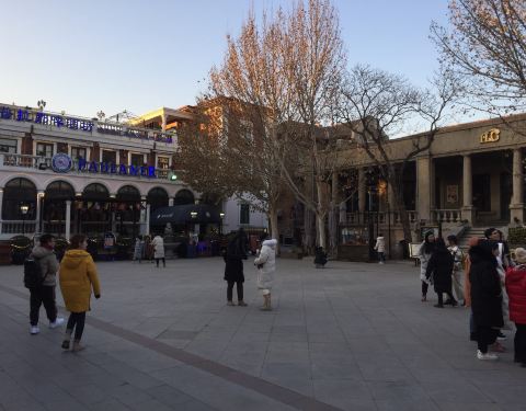 意大利风情街景点之一,在街道中段,广场很小,两侧都是遮阳伞和啤酒,夏天繁华时几乎寸步难行