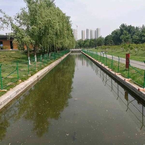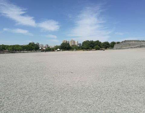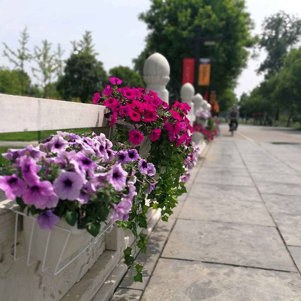 【龙首渠】是中国历史上第一条井式水渠,可惜兴修之后没有能够好好保护延续下来,经过这么多年的变迁,只留下了一点点遗址,主要在今西安韩城铁路远志山村铁路线北侧和大荔县有一段。而我今天来的这个龙首渠可以说是盗版或者仿品了,位于西安市未央区大明宫遗址公园内,靠近东面这边。 这边交通在北郊来说算是最便捷的了,乘坐公交2路、216路、703路、517路等数十辆公交车到【大明宫遗址公园】站下车,从东四门进入,靠左侧行走大概五十米即可到达龙首渠这边。 龙首渠隔壁是旅行团的大巴停车场,正对着的是一个很大的绿植雕塑,所以远远也就能看到,比较明显的标志。【龙首渠】全长大概在400米左右,宽有三米多,水现在这个季节很浅,目测只有几十厘米的样子,比较不爽的是现在人工修建之后,整个采用了砖铺设的地板和两旁的墙壁,完全没有一丁点古迹的感觉,面朝海园店,这个方向有三座石桥,这三座桥每一个和每一个之间的距离都是相等的,不得不说,古人的智慧真的是很厉害。这三座桥当中,中间的桥最长也是正对者含元殿大门正中央位置,两旁的两座桥,刚好对着含元殿的两座侧门,由此可见中间的桥应该是皇帝出行的御桥,而两旁的当为文武百官上下朝堂通行所用。古人的等级制度是非常严格的,也只有今天我们才能随意的通行御桥 其实这个景点真的没有什么意思,只有等到六七月份旁边的花海开了之后才会好看一点,现在的话,桥上挂的花篮花已经开了,等旁边的几片地里面种的树开花之后还是很美的,到时候可以过来拍照