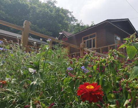 居然没有卖水的! 虽然是个2A景区,但是我不理解难道周边村民没有愿意挣钱的吗?随便谁家开个小卖店,我觉得应该都有不少生意的。周末这里人应该还是挺多的吧,如果有人卖水,冰镇饮料,冰棍之类的。 木栈道修得很好,就是从门口到栈道这段路走着有点奇怪,就像进了村民家。所以还是规划上有点问题。另外莫名还出现了一个偶遇客栈,有那么几间房子,一位老大爷给看门。 猕猴桃树我真心没见到几棵,看见了也就是3-5棵有青果子的树,自认为那应该就是猕猴桃树。即使在观光廊,也没见到,没有标志。 爬山还是有点累,到木栈道修的真心不错,我们周一去的,在景区里一共见到5位游客。这么玩真心爽!休息区没人占[呲牙] 山上的卫生间是无水的那种,分布也很合理不容易。 停车场比较小,能停的车太有限了。
