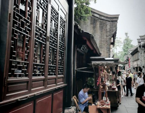 在锦里里面真的有很多很多小的景点值得大家好好看一看,比如说这个民俗记忆墙,他就用一些历史的建筑和历史的痕迹,向我们记录了过去的一些民俗民风,这个记忆墙也非常好找,他就在锦里景区的末端,而且是在行走的主干道上相信细心的你一定会发现。