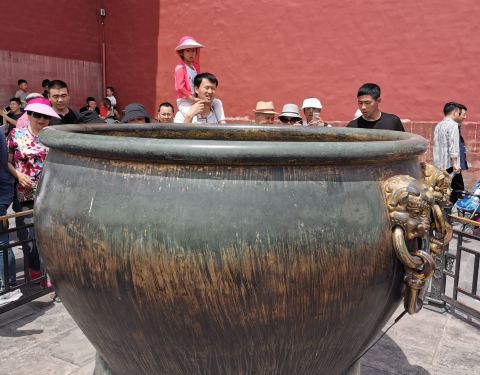 是故宫中用来存放水防备火灾的大缸,个头真的很大,古人想的真周到。