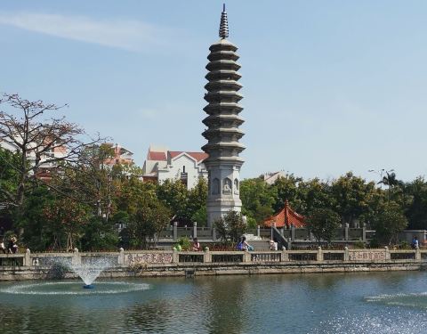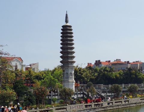 万寿塔建在厦门南普陀寺放生池旁边。造型简洁,却给人不凡的印象。