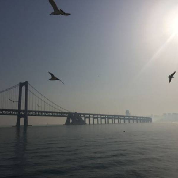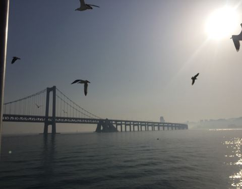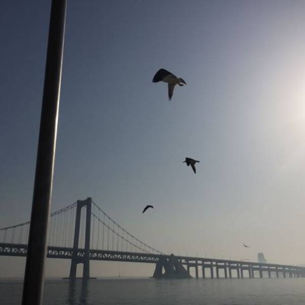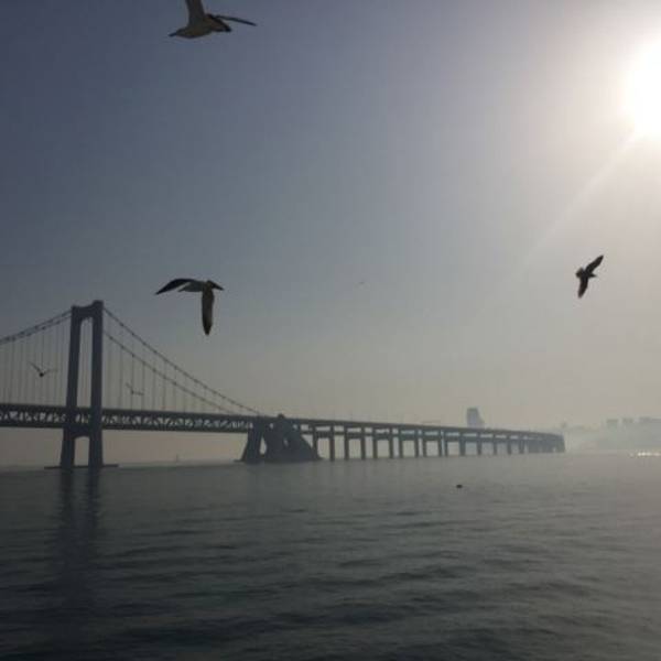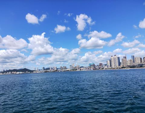 大连一定要是出海游玩一番,天祥号观光游轮是朋友帮我们订的,一路出去的时候不断有海鸥相伴,如果你手里有火腿肠,可以餵食她们他们会一直跟着你