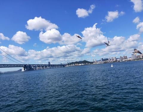 天祥号观光游轮是朋友帮我们订的,一路出去的时候不断有海鸥相伴,如果你手里有火腿肠,可以餵食她们...