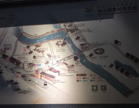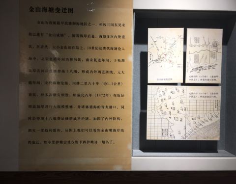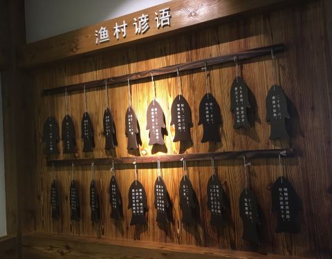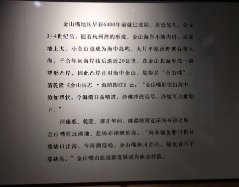 在金山嘴老街上的海渔文化馆,2层,门票10元,地方不大,售票阿姨会推销联票。 介绍里说海渔文化馆以渔村的历史发展为线索,详尽介绍了渔村的信仰、习俗、饮食等海渔文化,展示出杭州湾海洋渔业文化的深厚底蕴。 展馆介绍了金山嘴的由来,2楼的模型还不错,还有渔村谚语,渔村谚语有句“鲳鱼扁,嘴巴圆,小满芒种鱼发好,捕到舱里蹦蹦跳”