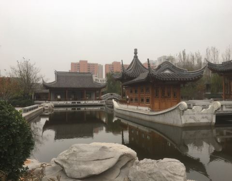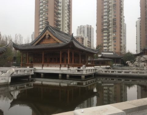 这是天津河北区近年新建的一个公园,以前刚刚建好的时候常来,这次去实在有点大失所望。江南风情的建筑,但是竟然已经有些破败的感觉,离远看还好,近看建筑都破旧了。