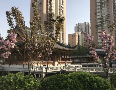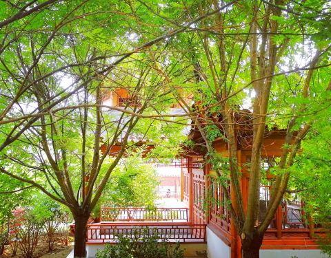挺小的社区公园,景色不错,古色古香的!去的人挺多的。跳舞的唱戏的声音很大,很吵,噪音让人会很烦躁!
