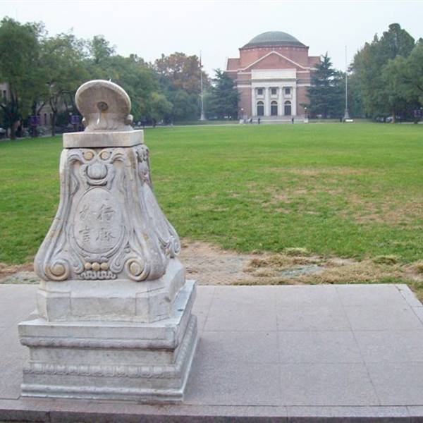 清华大学二校门北面的大草坪东边