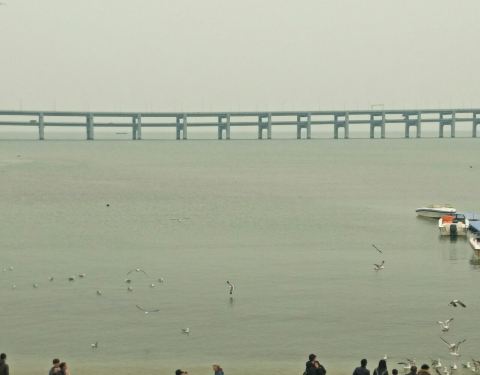 到星海公园的时候已经是深秋了,所以这一天我们没有看到有快艇。可能这个天太冷了,也不适合乘快艇会更冷,海上的风,在这边看了一下风景,很漂亮