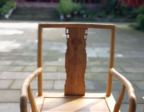 在成都凤凰山公园内慢跑徒步,发现一座道观,至真观。清晨的阳光正斜斜地泻下,透过院里的椅背斑驳成影