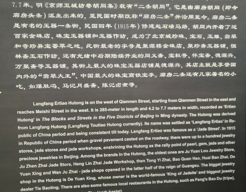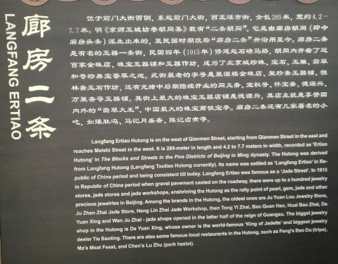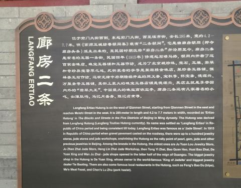 廊房二条胡同位于北京正阳门外,在前门大街西面,她东起前门大街,西至煤市街,在明清时期,这里是北京经营玉器的地方,许多珍奇异宝在此面世易手。