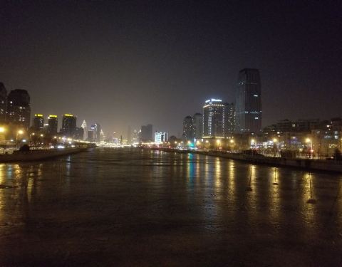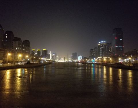 大楼林立,是海河上一段还不错的景色,经常有海鸥