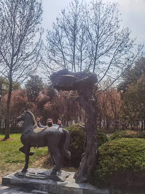 马桥公园又名马桥镇法制文化公园,位于上海市闵行区马桥镇,距上海市中心约33公里。 公园就是一个开放式绿地,供人们休闲锻炼之用,走进园内,看见老宝宝们在打牌、小娃娃们在戏耍,一幅挺和谐的画面,不禁让人心情愉悦,园内设有1块碑、4座青铜雕塑,讲述的都是代表马桥文化的故事。 碑:马桥古文化遗址碑。说的是明成化年间,马桥人董纶出任南京河南道监察御史后,三个儿子也出人头地,董恬出任大理寺少卿、董忱出任肇庆府知府、董怿出任绵州知州,被誉为三只凤凰,建石坊传世,民间称为“云间三凤坊”。 雕塑一:男耕女织雕塑。说的是马桥先民男的种田、女的织布,分工劳动、安居乐业的农耕文化。 雕塑二:董其昌雕塑。说的是马桥友好村人董其昌,在明万历十七年中进士,授翰林院编修,官至南京礼部尚书系,也是一位著名的书画家,雕塑后的两根柱石是董其昌祖居的原物。 雕塑三:吴会书院雕塑。说的是清同治十一年,马桥人顾言与纽世章、张庆慈创办了吴会书院,命题课试,是当时上海的八大书院之一,后又将吴会书院改办新式学堂,成为当时上海县境内最早的新式学堂,并以“强恕学堂”为校名,如今的上海马桥强恕小学,就是它的今生。 雕塑四:拴马藤雕塑。说的是清乾隆年间,乾隆皇帝南巡,在马桥友好村紫藤棚下歇息,并将马拴在了紫藤上,这棵紫藤有两种说法:一种说法隋唐时期遗留的,还有一种说法为明代大儒董宜阳所植,这棵紫藤就在马桥的古藤园里。 园内的草坪上还有一块完璧归赵的雕石,倒是与园内其乐融融的和谐氛围挺匹配的,园内的垂丝海棠挺多的,现在正是开花时节,挺美的。