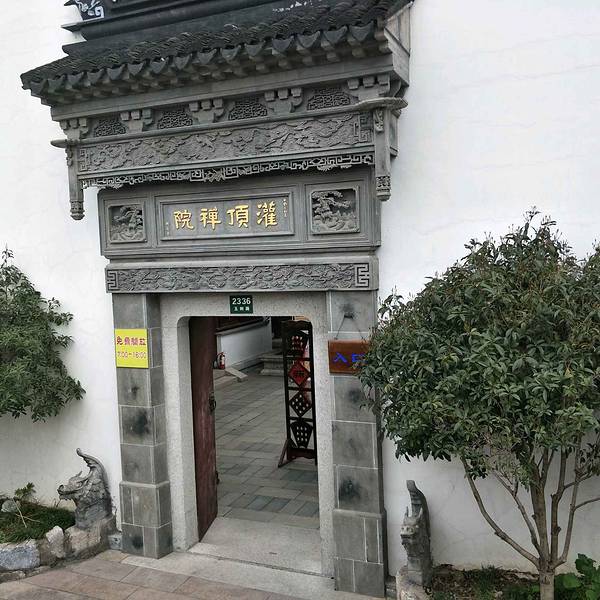 确实是个小小的寺庙,我们从市区过来到老街路过此庙,在一座跨塘桥边上,说是仓桥的标志性建筑灌顶禅院,也就是水次仓关帝庙主殿供奉关公神像。