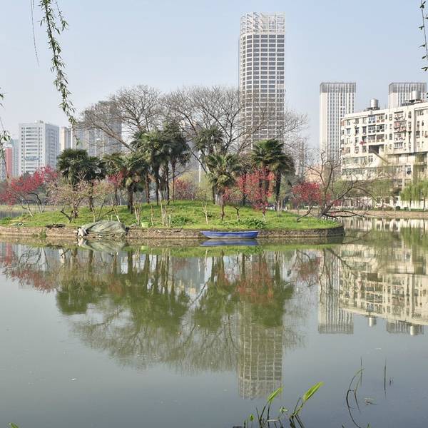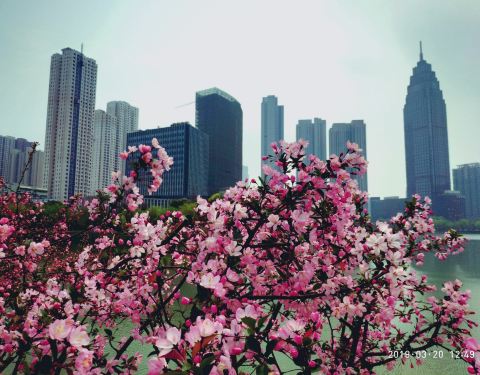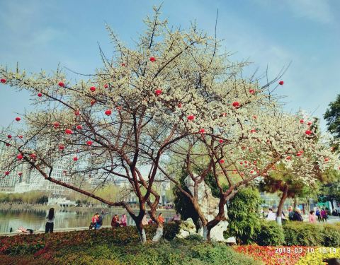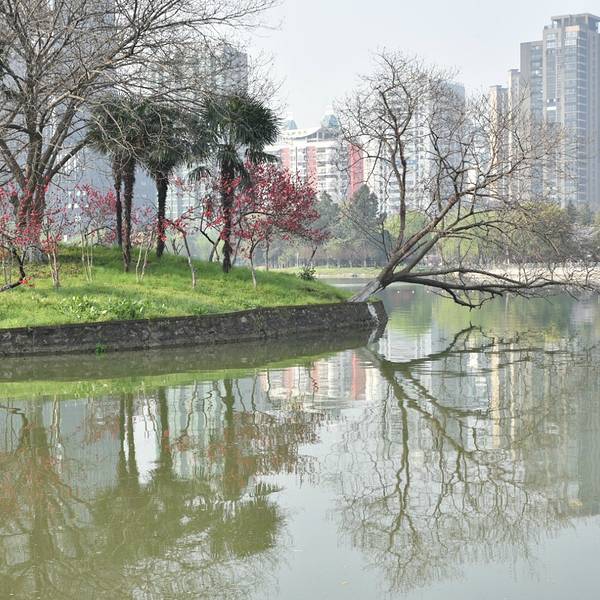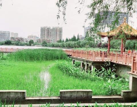 金骆驼 菱角湖公园位于唐家墩路新华路交口附近。公园面积不大,绿化蛮好的,有花有草有树林。出行便利。购物方便菱角湖公园位于唐家墩路新华路交口附近。菱角湖万达广场对面。公园面积不大,绿化蛮好的,有花有草有树林。有东门,西门两个注意入口。西门距离万达广场挺近。北门进去就是个小丛林,木棉花,松树,桃树,等有好...菱角湖公园位于唐家墩路新华路交口附近。菱角湖万达广场对面。公园面积不大,绿化蛮好的,有花有草有树林。有东门,西门两个注意入口。西门距离万达广场挺近。北门进去就是个小丛林,木棉花,松树,桃树,等有好多在这里,来这边的时候是阳历三月底啦,正值春天百花齐放的季节。红叶李,樱花,茶花,桃花,迎春天,木棉花等都开了,公园里也是生机勃勃,群花景芳。不时有市民在这里浏览观看,沿道路前行就是菱角湖啦!周围有环湖跑道和道路。据说菱角湖因菱角得名,原来是马场湖,后湖,因为这里盛产菱角而得名菱角湖。只是现在由于水质的原因,菱角已经很难大面积看到啦!在湖的西侧有人工栽培的一些莲科植物,由于夏天的时候应该也会有不少的莲花荷藕吧。这边还有木质桥穿越湖的南北两岸。不时会有人在这里过散步或跑步走过这里。可以说这里也是市民休闲娱乐日常活动的一个重要场所。包括广场舞之类的这里也可以看到。在闹市中,在繁华地带,与对面的万达广场,沃尔玛也算的上是相得益彰!广场的倒影在日光夜晚的灯光下也会倒影在湖里。显得倒也是蛮协调的。湖的东侧有个小岛,那里好像有桃花,小桃花岛吗,旁边有只小船,还是别有一番画面感呢。岸边的柳树绿了,迎春花开啦,游人也来啦!生活其实也有简单的时刻!