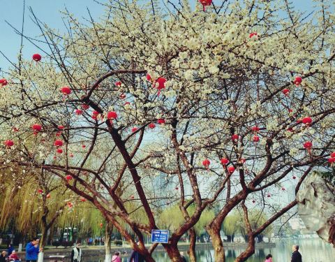 ...,菱角湖大门口的梅花也盛开了,今天再去看,梅花已经凋谢,玉兰花开的正艳,又吸引了不少游客来照相
