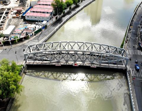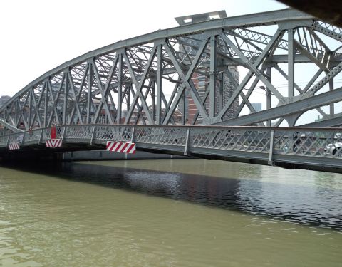 在上海连接苏州河二岸建造了许多各式桥梁。从上世纪初开始陆续建造,其中最有名的当属外白渡桥了,其实距其不远的浙江路桥也在桥梁史有重要地位,是当今鱼腹钢桁架结构桥梁的代表作。