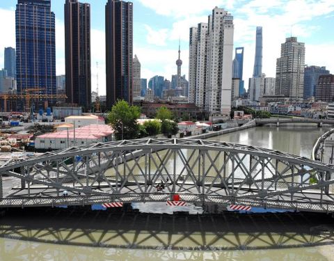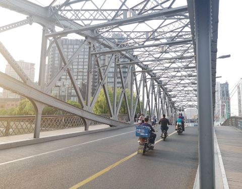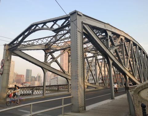 上海的浙江路桥,是一座国宝级的桥梁,建于光绪三十二年,1880年(算算几岁了?),其位于上海市区的苏州河上,是我国现在仅存的几座鱼腹式简支梁钢桁架的老桥之一。浙江路桥也算是明星了,在多部著名的影视剧中都出现过,琼瑶的《情深深雨蒙蒙》、《新上海滩》、《五号特工组》、《太阳帝国》、《飘帅》等等,这么多的影视镜头,很多人第一的反应肯定是著名的上海的外白渡桥,其实这些镜头都是在浙江路桥拍摄的,两座桥也是现在苏州河上仅存的两座钢结构老桥了,从侧面看整个桥身就像一条剔除了鱼肉的鱼骨架,这种结构及兼顾了受力,又使得桥的外观十分漂亮,非常经典。浙江路桥虽然外貌和外白渡桥十分相似,游客很容易把两座桥搞混,且来来往往的车辆并不多,让这座桥更加的接地气,对于苏州河边土生土长的许多老上海人来说,在桥上乘凉,从桥架上跳下河游泳,在桥上纳凉吃晚饭等等这些场景都承载着儿时的童年味道。现在还有很多新人在这里拍摄婚纱照,比在外百度桥(游客太多)参观游览舒心多了随缘看世界