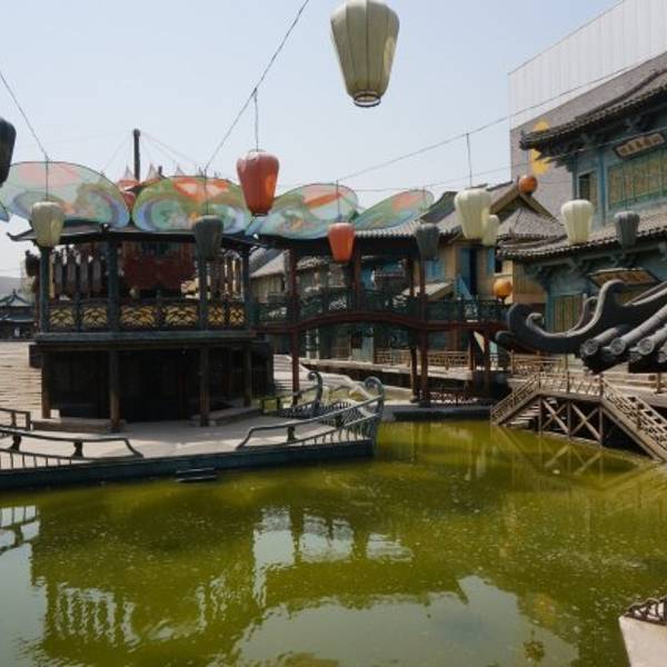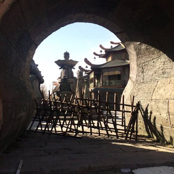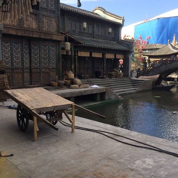 在怀柔,离城区非常远,公交866可以从东直门过来,基地很大,可以参观的就3处,内景,外景,和道具,道具还好,可以拍拍照,可以参观的外景有些破败,感觉像是某个剧组拍完遗弃的,而且很多建筑垃圾堆积,今天去的时候刮大风,外景比较不安全,门卫提醒我们凑合看下就好