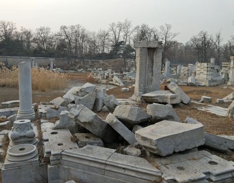 曾经是皇家园林具有西洋园风格的景观,如今只剩下了一堆石头。