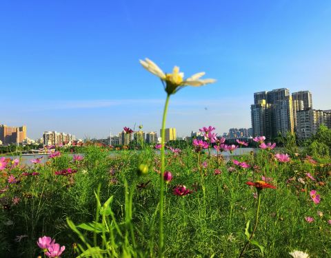 南湖的水非常平静,宛如明镜一般,清晰的映出蔚蓝的天空,远处的高楼倒影在湖面上,像是一幅美丽的画...南湖的水非常平静,宛如明镜一般,清晰的映出蔚蓝的天空,远处的高楼倒影在湖面上,像是一幅美丽的画,湖边盛开的小雏菊,黄的,粉的,红的,紫的,在绿叶的衬托下,显得格外娇媚!