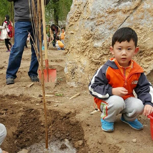 幼儿园组织春游去的,野外很漂亮,到处是鲜花和麦田。带孩子体验乡村生活,种树,拔萝卜,喂兔子,看驴推磨,都是城里孩子难得一见的景观。