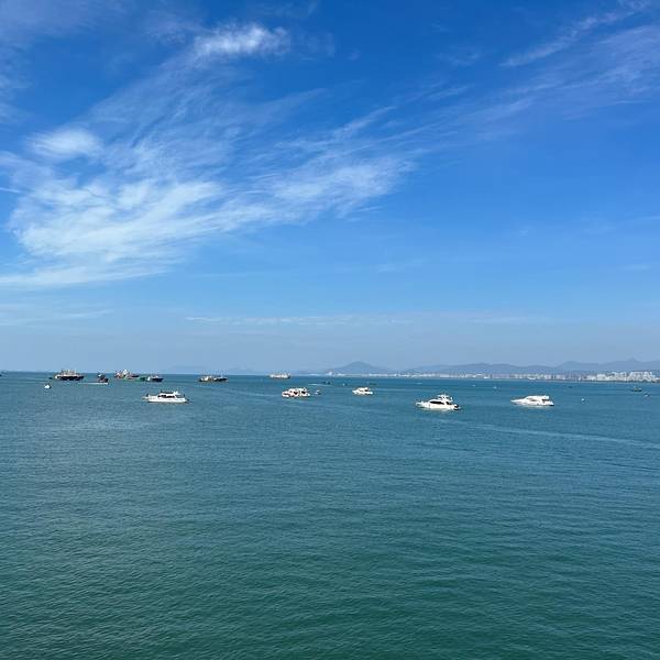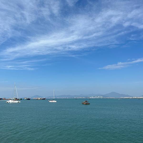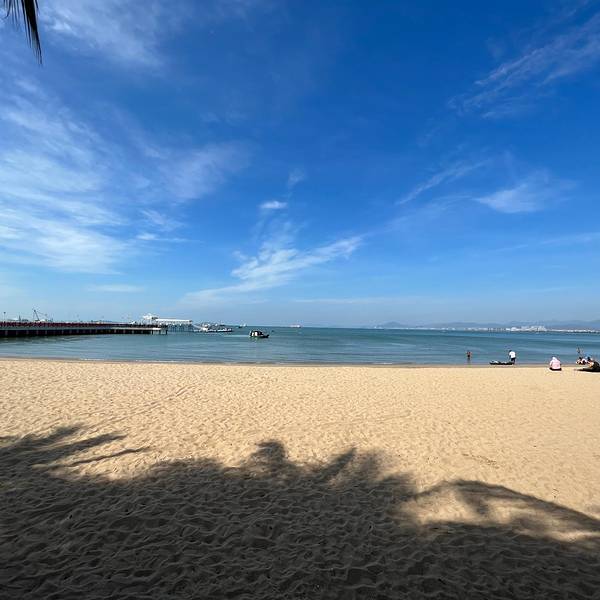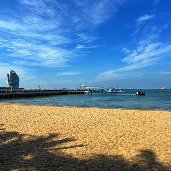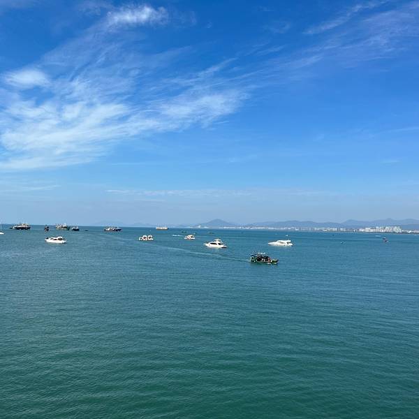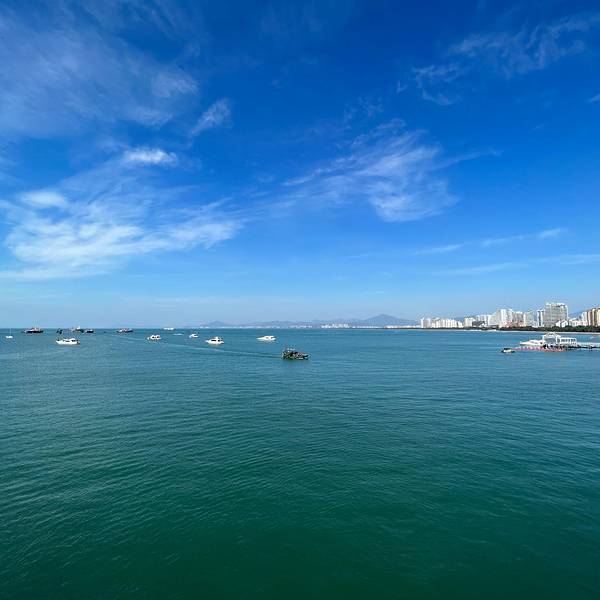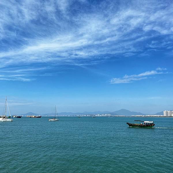 层次分明,游人在海滩上踏浪戏水,开阔的海面上,帆影点点,感叹大自然的美,那一刻,真的觉得什么都值得了