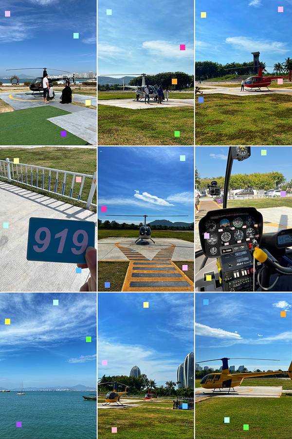 《和你一起坐直升机,换一种视角,看三亚》 三亚,是个被大自然宠坏了的地方。这么多年来,三亚传统的鹿回头,天涯海角,南山文化,蜈支洲岛,热带森林公园,甚至在房间阳台上往外看海,亚龙湾海棠湾超五星级酒店的无边泳池,亚特兰蒂斯的水世界水族馆,都已经远远满足不了游客的胃口。不过去三亚一定不要错过的一个行程就是去坐一次直升机,那是一种和你的伴侣从来没有体验过的感受。 三亚有好几个直升机基地都可以乘坐直升机,凤凰岛直升机基地位于凤凰岛上的东北端。直升飞机能容纳4个人,除了飞机驾驶员,每次飞行可以最多坐三名乘客。 在凤凰岛的停机坪上,三架直升机来回穿梭,平均每隔三五分钟就有一架飞机起飞或者降落,这阵势感觉就像是三台开足马力的印钞机一样,忙得不亦乐乎。 买完票,排到时很兴奋,虽然有点恐高,起初挺害怕,但是直升机飞到最高处,看看脚下的风景,反而没有觉得害怕,特别是晴天时乘坐在直升机上俯瞰整个三亚湾,大东海,仿佛一幅巨大的油画映入眼帘。海水澄净碧蓝,层次分明,游人在海滩上踏浪戏水,开阔的海面上,帆影点点,感叹大自然的美,那一刻,真的觉得什么都值得了。如果你的腰包足够鼓,可以飞到海棠湾,看着海岸边上一排超豪华各种造型标杆的酒店,那更震撼了,仿佛整个三亚都是你的。 来三亚怎么不体验直升机呢?翱翔天空俯瞰大海的旅行才算完美,和你一起坐直升机,天地之间,换一种视角,看三亚! 小贴士: 凤凰岛直升机基地 地址 : 海南省三亚市天涯区三亚湾度假区内凤凰岛(进岛过桥右转100米) 门票:环凤凰岛1公里 198/位;环凤凰岛5公里 500/位;环凤凰岛10公里960/位;网络购票有优惠。 开放时间: 9:00-17:30; 交通:自驾车,或打车前往【凤凰岛】,或多路公交车可到附近【凤凰岛】站下车,进岛过桥右转100米即到。 推荐指数:★★★★★ 游玩攻略: 1,目前三亚主要有5个直升飞机基地:凤凰岛,海棠湾理文索菲特度假酒店,海棠湾广场,三亚大东海(国际)潜水俱乐部,鸿洲游艇码头。首推凤凰岛和海棠湾广场的两个基地,其中凤凰岛是最火的一个,岛上至少有2处可以坐直升机观光。 2,坐直升机有很多种套餐,最低的体验价格是198元/人,1公里;还有环凤凰岛飞行,500元/人。飞到蜈支洲,西岛,海棠湾等地需要3000-7000不等的费用(网络购票有优惠)。 3,如果你只是想体验一下,顺便拍几张照片,推荐里程最短,最便宜的那几个套餐就行了。 4,直升飞机一般要求是2人起飞,如果只有一个人就去现场等着拼就行,基本上马上就可以拼到,用不了多久;如果你一个人,又不想和别人拼机,直接买2张票包机即可。 5,坐直升机不可以带帽子,墨镜,包包,伞等一切需要手拿的东西,除了手机可以带,其他都不能,现场地面有专门的储物箱子。 6,上飞机前一定要拍一张和飞机的合影。 7,如果是短距离体验,自己拍摄视频或照片的话,因为时间太短,一定要抓住每一刻的时间,不留遗憾。 8,上飞机之后手机一定要开广角拍摄,可以把全机舱拍进去,效果会更佳。 9,能坐到前面的副驾驶处仓的话最佳,让同伴在后面开广角拍你的背影和转头的照片。 10,一定要拍一张带着耳机的照片,会有种好莱坞大片的感觉。 11,大多数朋友体验直升机是为了拍美美的照片,直升机时间是很快的,提前看好攻略(例如出镜的衣服,最好看的拍摄角度,大概拍几张或视频......);一定要选晴天中午、下午去,怎么拍都美。 12,在起飞前和飞行过程中,会有专人拍照,当然了,拍下的照片你还得另外再掏钱。还可以+200元全程录像,很有纪念意义。