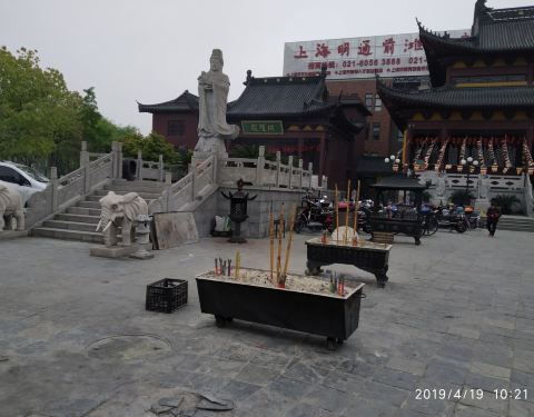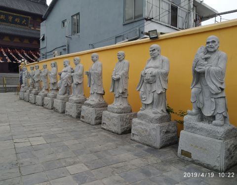 就在三林老街那附近,正好趁着这阵子庙会,就顺便过去看看。寺庙说是有点历史了,不过建筑还挺新的,十八罗汉石雕放在露天,边上有解说。