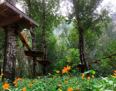 坡峰岭下面的小景区,没有门票,停车免费,就是围着山修了点木栈道,大队弄了些农家乐,民宿网上查了超级贵,要2千多一晚上,严重不推荐!不花钱的景点也算可以了