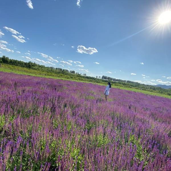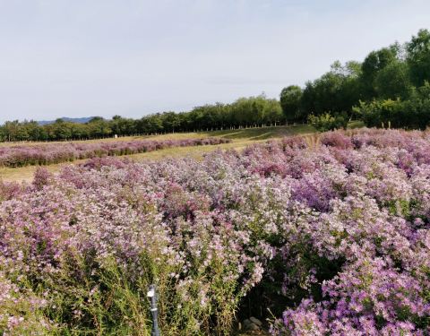 每年的六月初至十月底,这里呈现着一派花的海洋。主要有格桑花、薰衣草、鼠尾草、马鞭草、等很多种花草,很多都叫不上名字了。缤纷的花田,给大地披上了鲜艳斑斓的彩装。