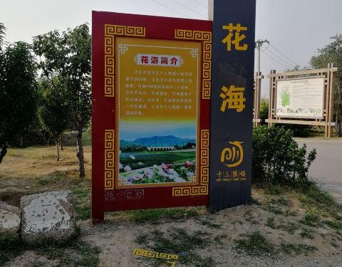 北京市昌平区十三陵千亩花海建于2014年,由北京市花木有限公司承建。花海内种植花草树木二十余种,百花齐放时,放眼望去仿佛置身花的海洋。