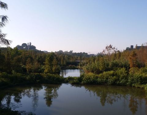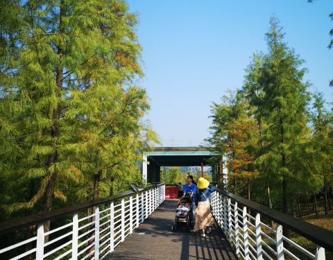 【风景】松木林、灌木丛、水草、热带植物,植被系统非常完善;很多鸟类到此栖息、还有一些爬行动物在此栖息,生物链也非常整体。整个湿地公园的神态系统十分完善。面对青山、前有湖泊,树林环绕,湖光山色。美不胜收。松木矗立,深秋时分,金光闪闪,犹如童话世界里一样。公园配套了木板栈道,让人漫步其中,感受自然风光带来的美丽,也让心情得到放松。附近有超市、餐厅,方便购物,补充给养。犹如童话世界的景色,可以满足很多摄影发烧友的取景需求,拍出非常漂亮的照片。 展开