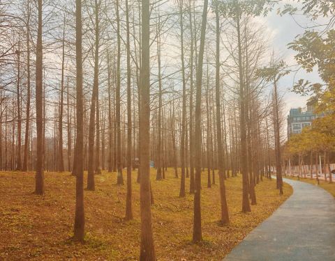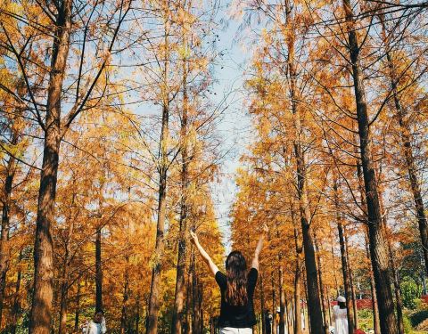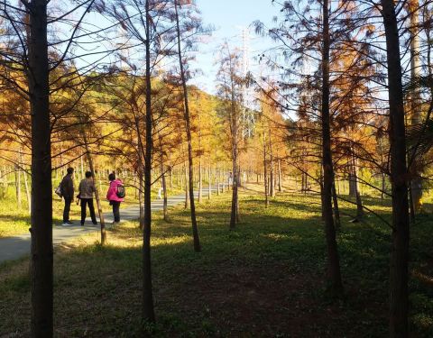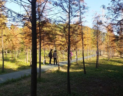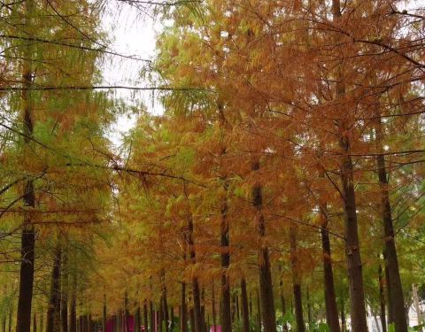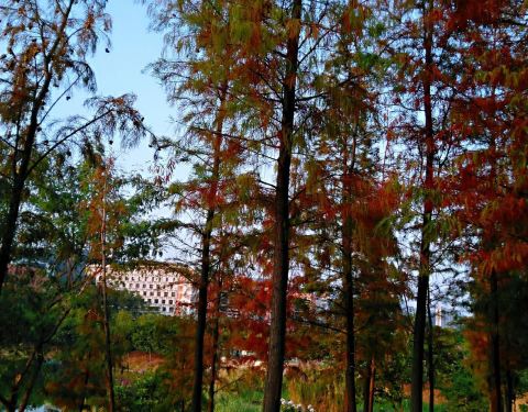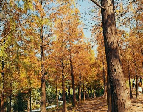 位于大观北路的湿地公园,从6号线黄陂地铁站出来再坐333到总站就可以,不过真心看了实景觉得没有之前看到的图片好看。其实整个公园不是很大,逛一圈下来最多也就一个小时足够,里面的松叶其实要完全枯萎远景才好看,勉强有黄红色的秋意出来。
