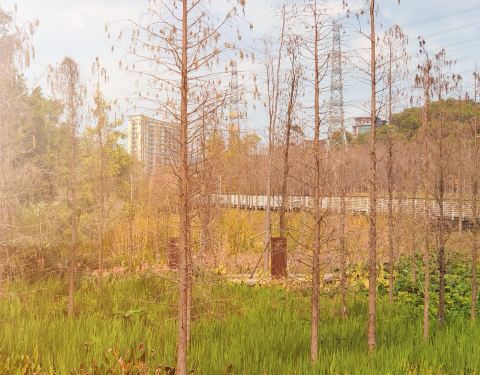 位于大观北路的湿地公园,从6号线黄陂地铁站出来再坐333到总站就可以,不过真心看了实景觉得没有之前看到的图片好看。其实整个公园不是很大,逛一圈下来最多也就一个小时足够,里面的松叶其实要完全枯萎远景才好...