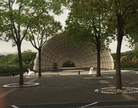 这个公园去的很多,平均下来一个会回去20次左右,这个广场剧场叫贝壳剧场,每次去的话都会看见,有人在拍婚纱照。拍照感觉挺不错。