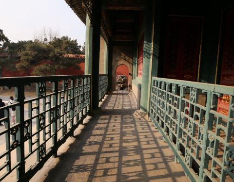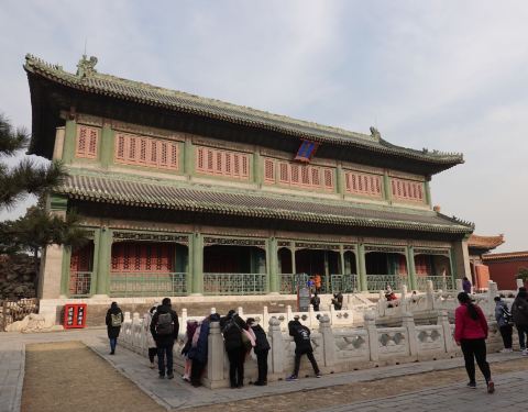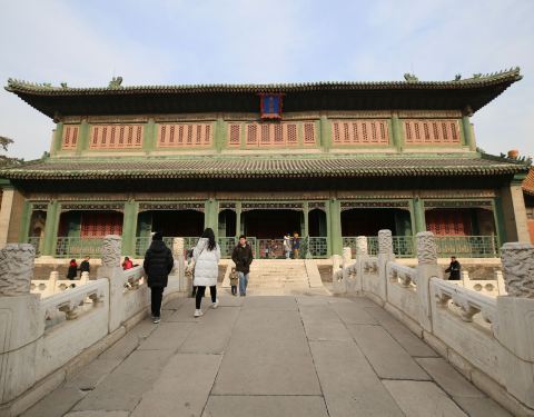 文渊阁的建筑在紫禁城里是比较罕见的,顶为绿色,是特殊的防火标志,这里曾经是存放四库全书的地方,在文渊阁旁边还有石碑记录,是紫禁城内十分罕见的。