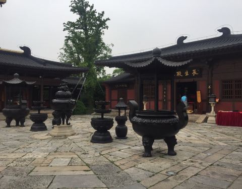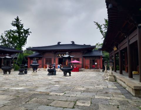 在广富林遗址公园里有一个三元宫,三元宫是新造的,面积挺大的,走进去好几层,里面可以敬香祈福,所以人还蛮多的。三元宫边上还有个庙可以一起逛逛。