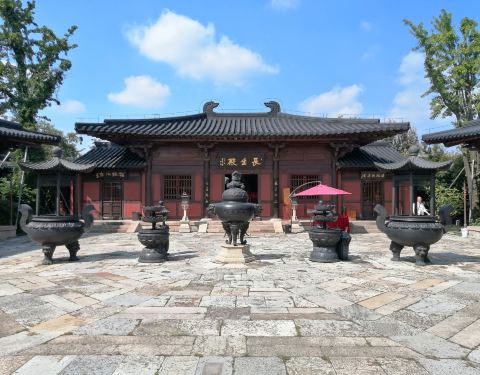 其它各殿就中规中矩了,中轴线上有生辰殿和寿星殿,入内均须脱鞋三元宫和知也禅寺分列高高的富林塔两侧,因为后者名气比较大,往往被误认为这一片包括塔都是知也禅寺的,实际相互独立各有小院。 从水下博物馆那里拍到的红墙黑瓦的建筑群就是三元宫,一个道观。进门会先看到亭子...三元宫和知也禅寺分列高高的富林塔两侧,因为后者名气比较大,往往被误认为这一片包括塔都是知也禅寺的,实际相互独立各有小院。 从水下博物馆那里拍到的红墙黑瓦的建筑群就是三元宫,一个道观。进门会先看到亭子造型的灵官殿,脚踏火轮手持法器的王灵官铜像正瞪眼看着每一个进门的游客。 其它各殿就中规中矩了,中轴线上有生辰殿和寿星殿,入内均须脱鞋。 展开