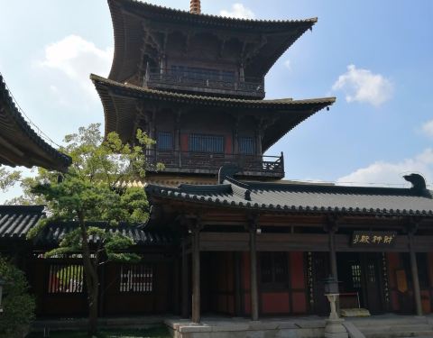 首先必须要说的是,这里是文化展示点,文化展示点,文化展示点……加上边上的一个禅寺,算上释儒道的展示而已。 三元宫主供奉的是天地水三官大帝,作为宫观展示,这里格局还算是规整,灵官殿,长生殿,三官殿的三进布局,偏殿是财神殿和慈航殿,算是完整的。不过目前疫情的原因,基本都没开,只能隔空看一下。 最让人吐槽的是这里的造型,远看就一日式庭院,连边上的塔都是三重塔造型,在说明里硬是扯上所谓仿晚唐的造型,日系源自唐朝不假,不过人家改良后风格真的不一样啊,一个道观何必呢,好吧,其实就一个文化展示点,我错了