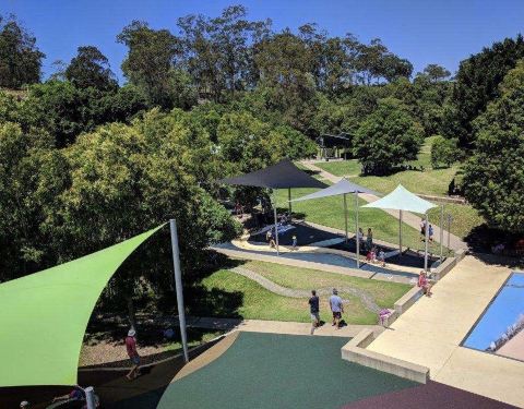 What a great little find!Drive through a commercial semi industrial area, and be pleasantly surprised to find this mini child friendly oasis. Plenty of parking, lots of shade, and fun times for your little one. Several little pools and shallow rivers for you baby to play. My son is 10 months old and just loved it. Although we didnt use it, I saw that there was also a small zipline and playground. All of this for free. Also plenty of toilets. Thoroughly enjoyed splashing around in these pools.