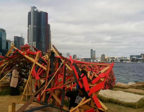 顶着大风去Barangaroo 看雕塑展,和Bondi 的不能比啊!游客不是很多,可能是旅游淡季的缘故吧,天气也比较冷,停车挺方便的。