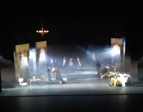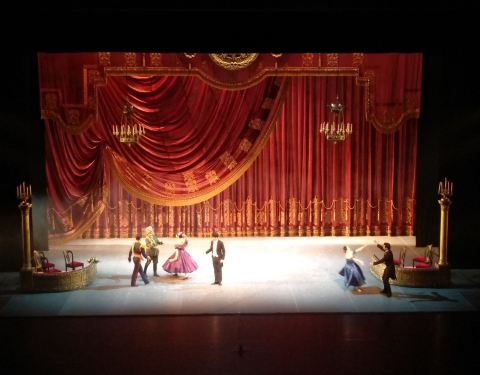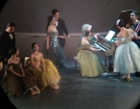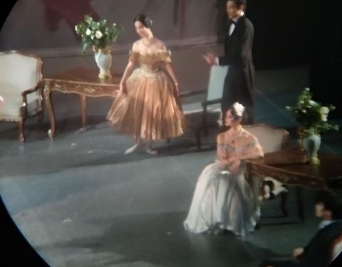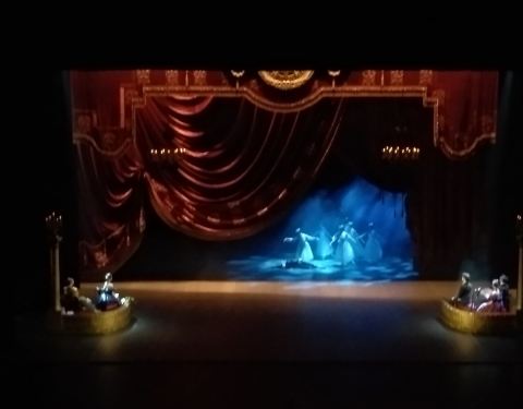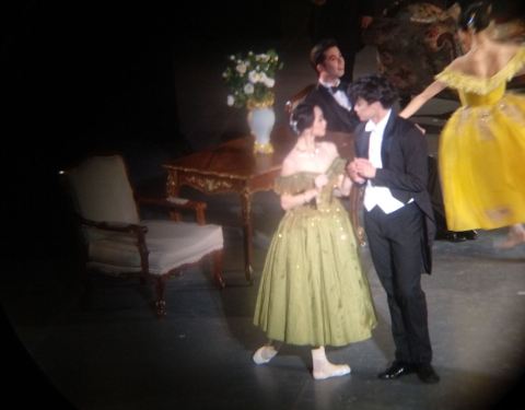 上海国际舞蹈中心有一个1080座的大剧场。11月29日上海芭蕾舞团原创芭蕾舞《茶花女》。以小仲马名著《茶花女》为蓝本改编,在舞美设计上力求还原1850年法国的时代特征和19世纪巴黎歌剧院的风貌。以一种朦胧的油画风格,写意地暗示女主角玛格丽特通过回忆讲述自己的爱情故事。 二楼最前排中间视角。