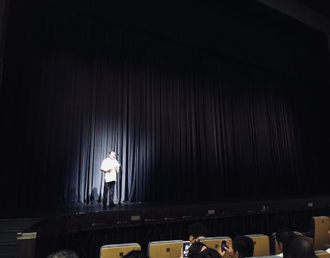 总体比较新,舞台不小,但也算不上大。管理挺严格的,背包里一小包巧克力棒也要寄存