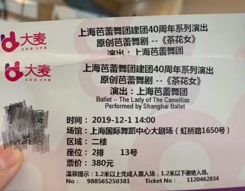 闺蜜请我看芭蕾舞剧茶花女,地址位于虹桥路1650号的上海国际舞蹈中心大剧场,交通很方便,地铁10号线水城路站2号口出来就是。 芭蕾舞难得欣赏,所以早早来到,剧场内不可以带食物进去,如果有拿的话需要寄存才可以入内。 剧场有上下两层,我们的席位位于二楼,今天天气超冷,不过来看表演的人还是挺多的,剧场内也是温暖如春。 这次欣赏的是原创芭蕾舞剧《茶花女》,舞剧改编自小仲马原著,由英国著名编导、上海芭蕾舞团艺术总监德里克·迪恩编舞,吴虎生饰演男主角阿而芒,戚冰雪饰演女主角玛格丽特,表演者舞技娴熟,轻盈优雅,对人物的把控很到位,配合也是非常默契,让人赏心悦目,就是演出不让拍照,有点遗憾,不过总体感觉还是一次不错的艺术享受