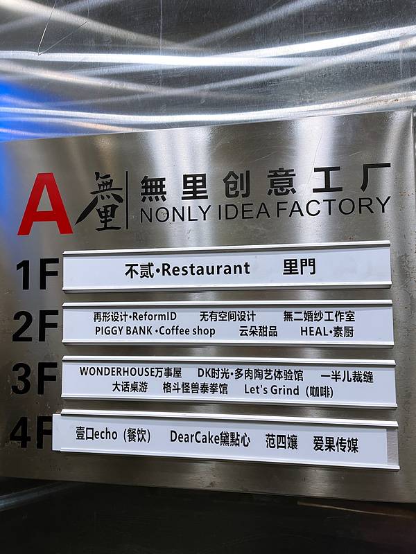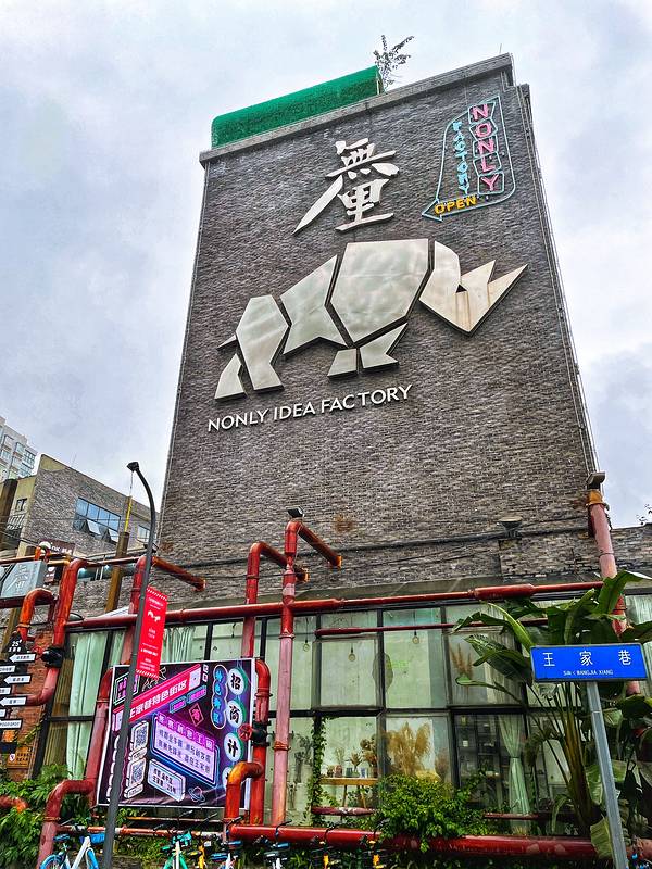 《吃货和潮人最IN文艺小众聚集地》 在成都,还有那么一些地方,有过去,也有现在;有陈旧,也有创新。因为上个世纪90年代的国企改制,以及随着城市化进程的推进,大量市区的工厂逐渐搬迁到更偏远的郊外,那么在城区留下的原厂房,或者拆迁新建商品楼,或者保留原结构装修换用途。就这样,一个个厂房活化的创意园酝酿而生。 说到成都的创意工厂,你会想到哪一个呢?在西一环内,就隐藏着这么一家利用旧厂房改建的吃喝玩乐之地,这里曾经是国营成都三江布鞋厂,成都市区最后一家手工布鞋厂,源于1914年,当时卖的鞋档次非常高,基本上是社会上层的人穿的,很多领导人都是他的顾客,一度也成为了国民品牌。1980年三江布鞋厂最为鼎盛时期有三百多名工人日夜赶制手工布鞋。这里承载着许多成都人的记忆,现在活化改造成了無里创意工厂。 在自明代起成都古城就有了花牌坊街上,这个地方非常小众,工厂没有标志性大门,只是在一栋高建筑上写着“無里”两个字,标志是墙上这头“愤怒的犀牛”! 创意工厂面积很小,不过就是一个U字型厂房,但却装修设计得很精致,满满的怀旧工业风。大门外奇形怪状的钢管子,入口通道墙上,涂鸦画风有点诡异。走进天井,四四方方的一个露天院子,泛着时代记忆的青砖和红砖墙,裸露的黄色管道,布满四周的涂鸦,以及四周文艺清新的创意店铺,令人安静而舒适。 如今这家荒废的小小布鞋厂,披上了创意的外衣,聚集了一群想法特别的年轻人,将此地慢慢改造成一个创意园区。无里创意工厂的四个方块明确标示了ABCD四栋主楼,从各商家的店名几乎就能大致判断其各自的主营业务,涵盖了吃喝玩乐各个方面。 曾经的国营三江鞋厂现已化身潮人基地,在这里,你也可以成为文艺青年;在这里,瞬间把你拉回到那个工厂年代,回忆无法抹杀的痕迹;在这里,你可以去这些老一辈挥洒汗水和青春的地方找寻美食;你说说,这何尝不是另一种感受成都悠闲温润的生活方式?! 旅游小贴士: 无里创意工厂 地址:四川省成都市金牛区王家巷花牌坊街40号; 门票:免费; 开放时间:全天开放; 交通:最快捷打车;公交车【花牌坊】站下车,步行250米即可到达;成都地铁5号线【花牌坊】站D出口,步行800米即可到达。 游玩攻略: 无里创意工厂简单逛逛半个小时,认真逛拍照差不多1~2小时;如果想细细地探索,慢悠悠地耍,可以溜达一天。周边的景点不少,可以规划好路线一起游览,如永陵公园王建墓博物馆,宽窄巷子,金沙遗址博物馆,杜甫草堂博物馆,四川博物馆,青羊宫等。 在无里创意工厂吃喝玩乐,日料店,酒吧、餐厅、咖啡馆都能在这里找到它们的身影,人流量不多,商业气息不浓,喜欢安静的朋友可以过来坐一坐。如成都赫赫有名的水吧荒石公园,五星好评的人气西餐壹口echo,以南洋菜为主的小娘惹私家菜餐厅,很有格调的日料店彩.精致料理,以乐山烧烤和鸡尾酒共存的时尚餐吧不贰,一目了然、一语双关的麦酒社,拥有一个浪漫店名的烘焙体验店Meet You Dessert,以啤酒辅以小菜的休闲酒吧WONDER HOUSE萬事屋,很受追求健康饮食人士喜欢的威滋能量沙拉,组团去世界各地潜水玩的潜水动物园,高手调制各色鸡尾酒的店酒精实验室,甜品深得你心的Dear Cake黛点心,少见的墨西哥餐厅MECAL,鬼神主题的日式烤肉店章鱼厨房;此外,这里还有创意花店、多肉馆、纹身店,等等都藏在这个怀旧的小厂房里。