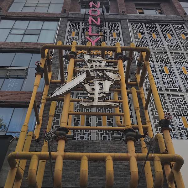 在自明代起成都古城就有了花牌坊街上,这个地方非常小众,工厂没有标志性大门,只是在一栋高建筑上写着“無里”两个字,标志是墙上这头“愤怒的犀牛”!