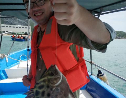 我们钓到几条五颜六色的海鱼,女儿还钓到一条四五斤的龙胆斑,很难得,大家都惊叹。总之,愉快的海钓经历